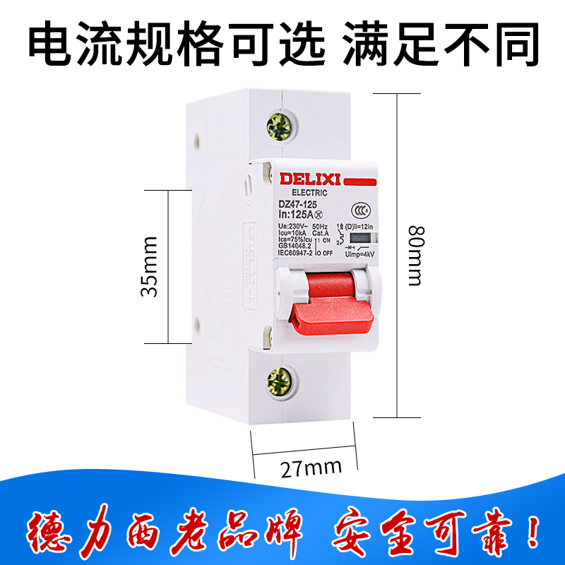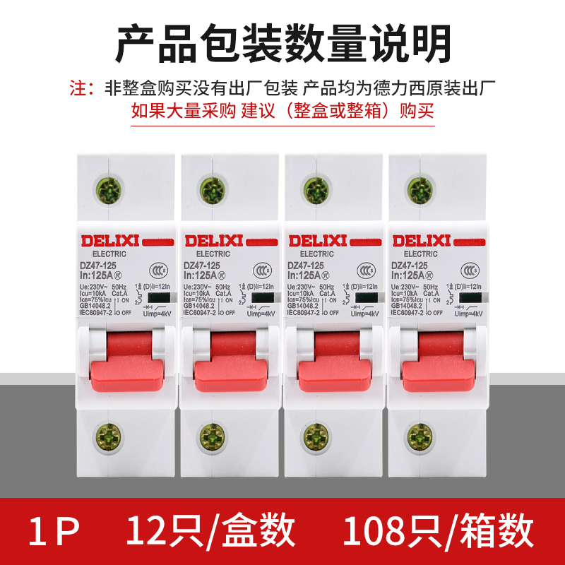 Delixi circuit breaker DZ47 air switch D type 100A 125A 80A high power open single pole 1p