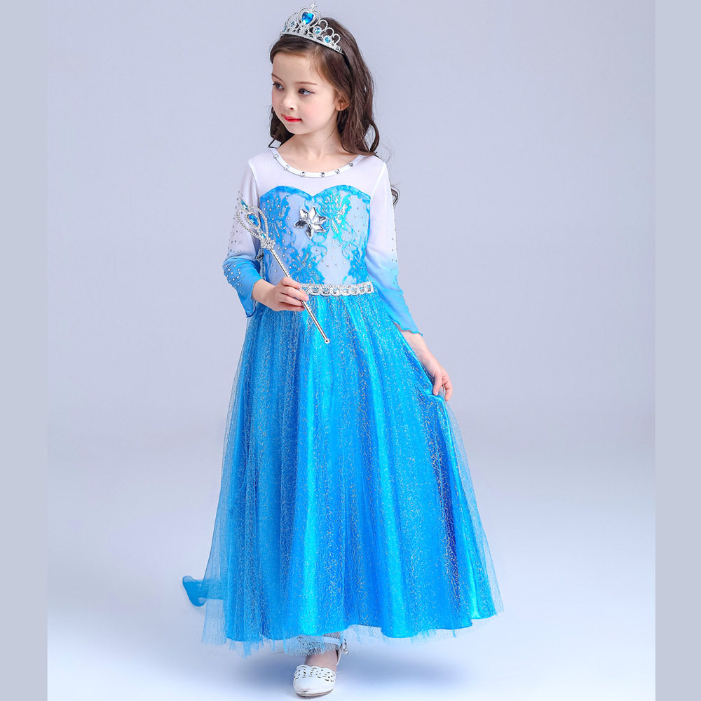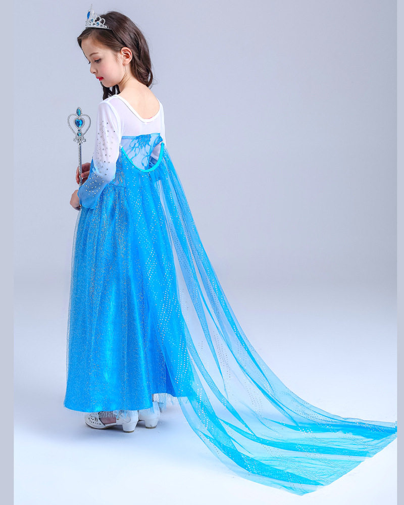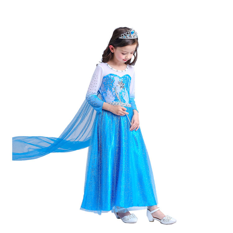 New ice queen dress girl, Princess Aitha, has a long skirt for her dress and a long dress for her birthday.
