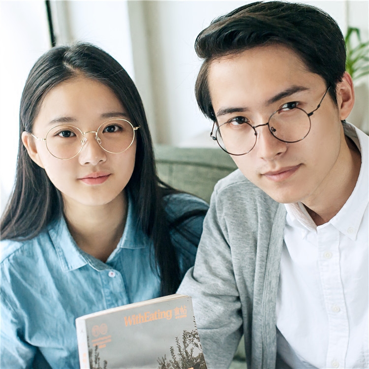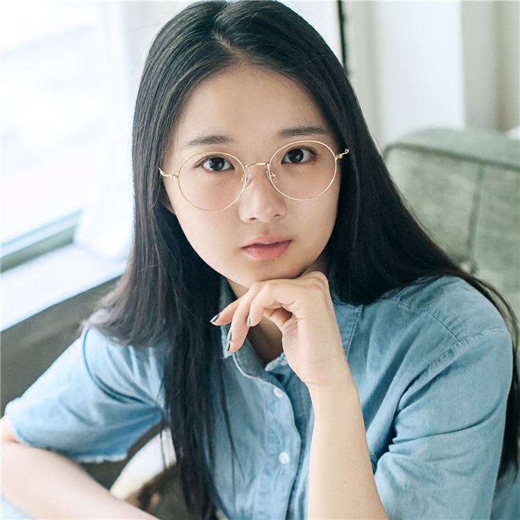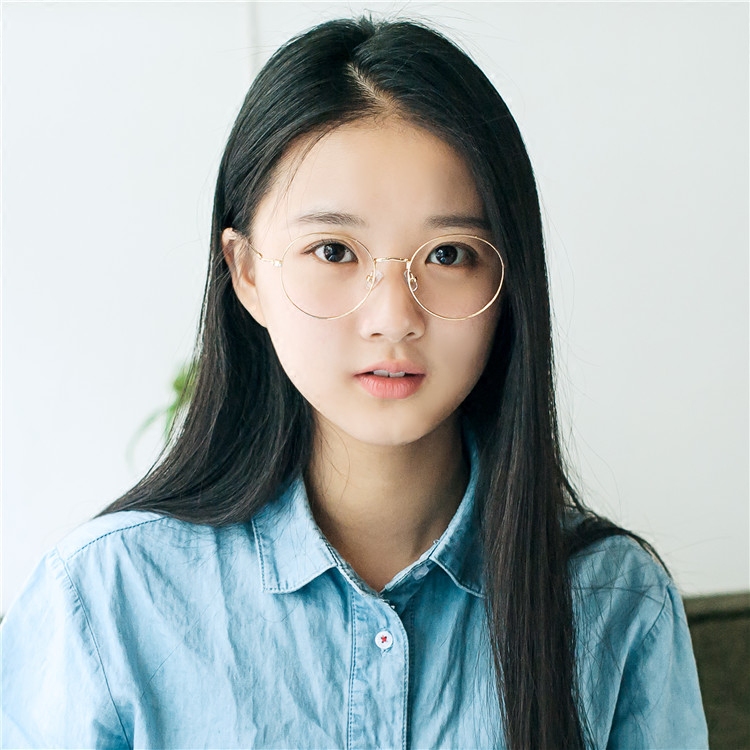 Retro Metal Glasses Frame Han Han Edition Round Face Frame Metal Wire Could be equipped with near-sight flat gold