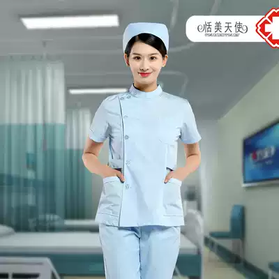 White women's flat collar two-piece set short sleeve nurse's clothing blue Women's Flat collar two-piece set short sleeve nurse's clothing pink women's flat collar two-piece suit short sleeve nurse's clothing white women's partial flat