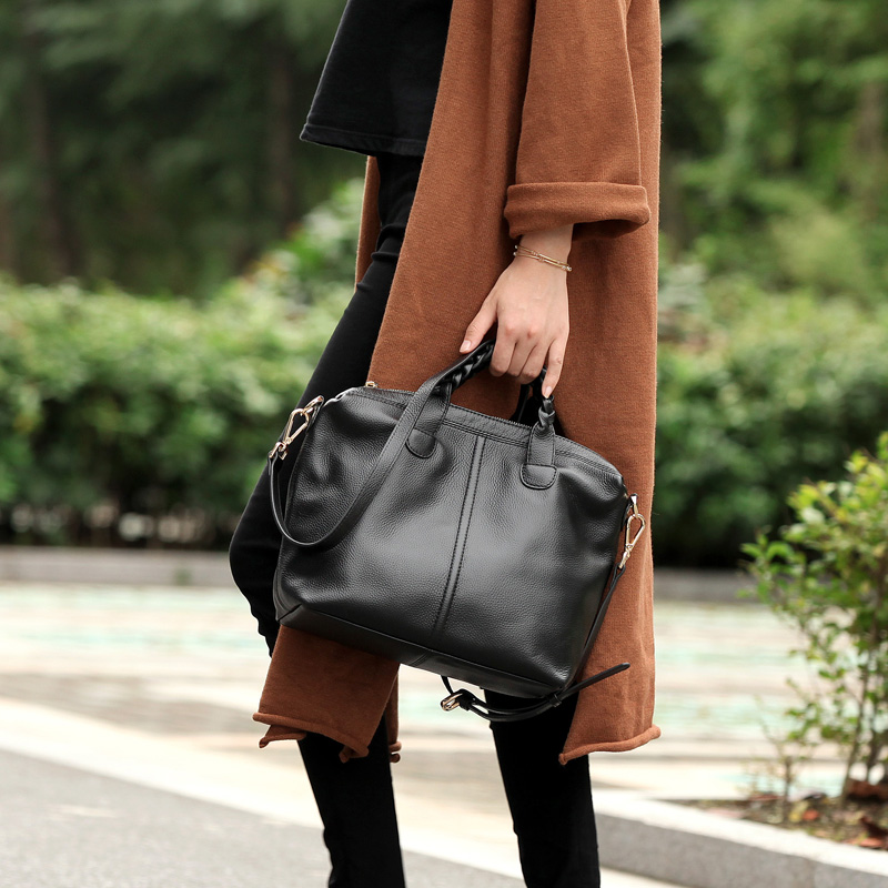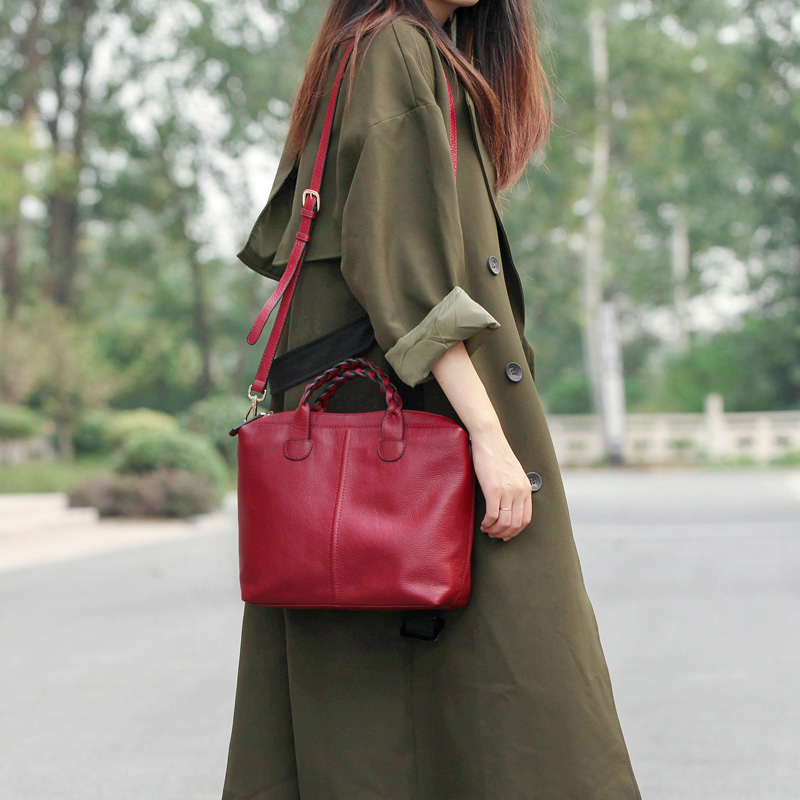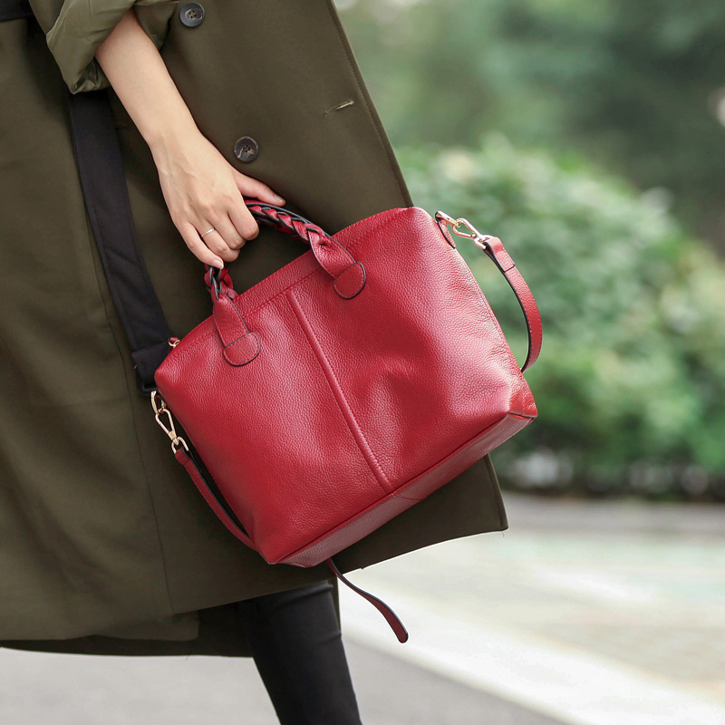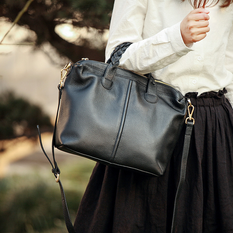 Qingge 2022 spring and summer new first layer cowhide leather retro simple temperament hand-held one-shoulder messenger medium women's bag