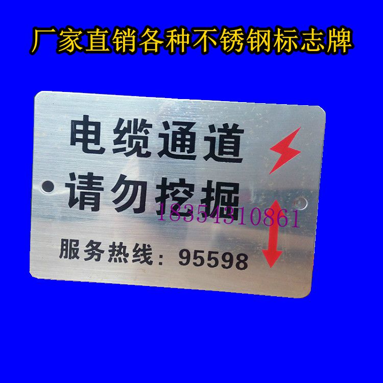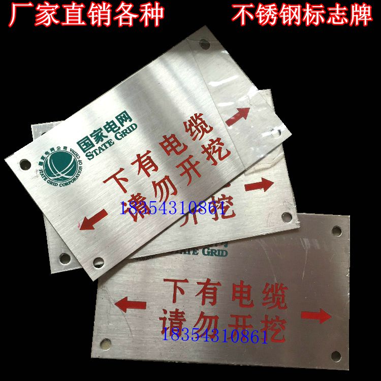 Stainless steel walk sign There is a cable warning sign under the gas pipeline ground walk sign Stainless steel sign sign