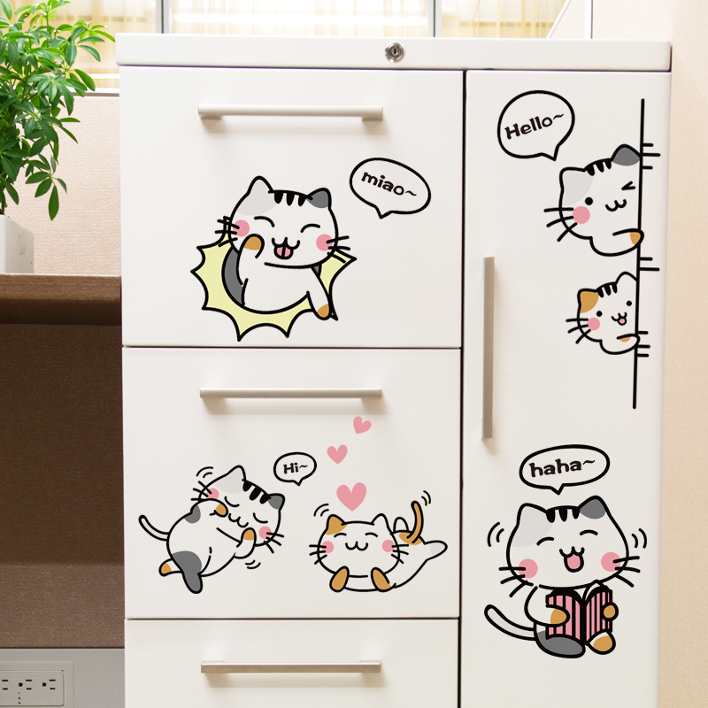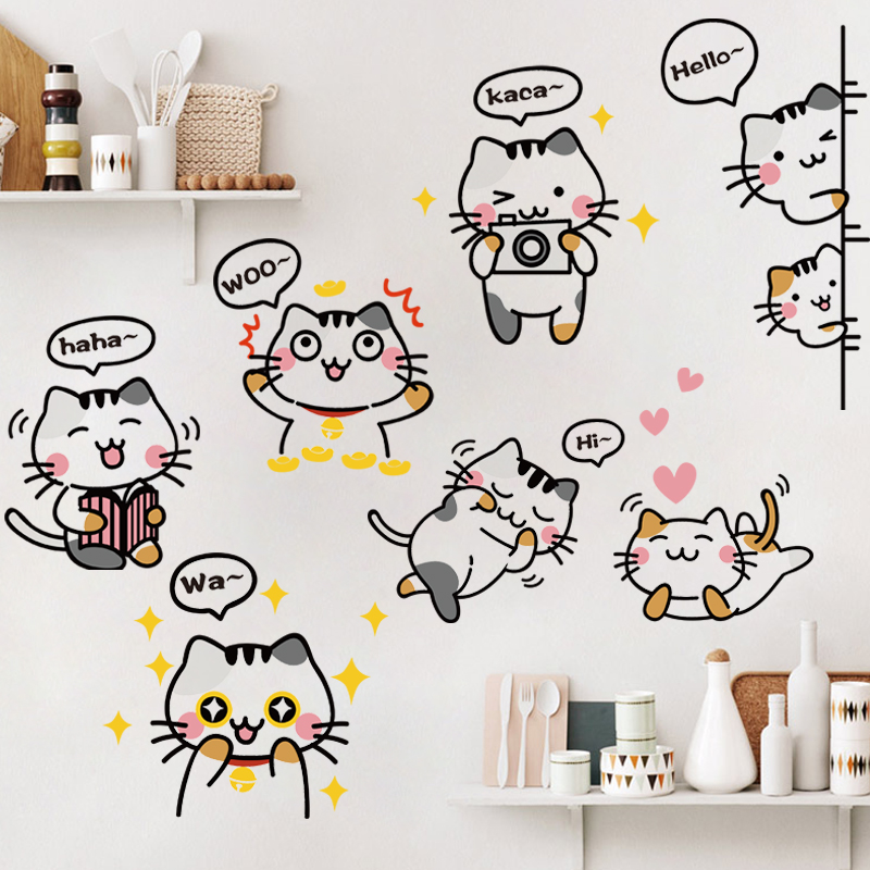 Cozy bedroom wallpaper Self-adhesive wallpaper Dormitory Room Background Wall Decoration Desktop Sticker Cartoon Kitty Wall Sticker