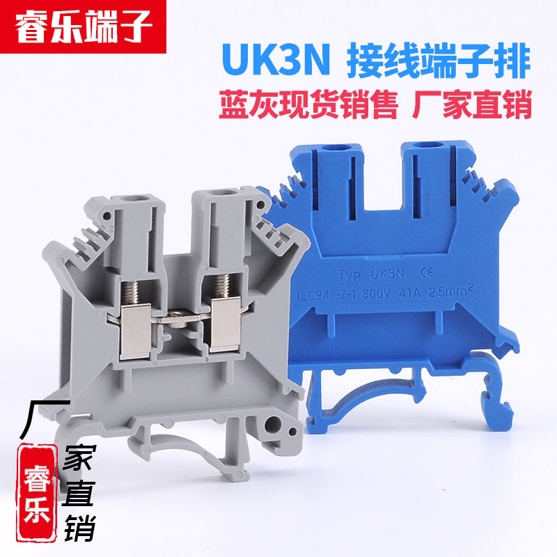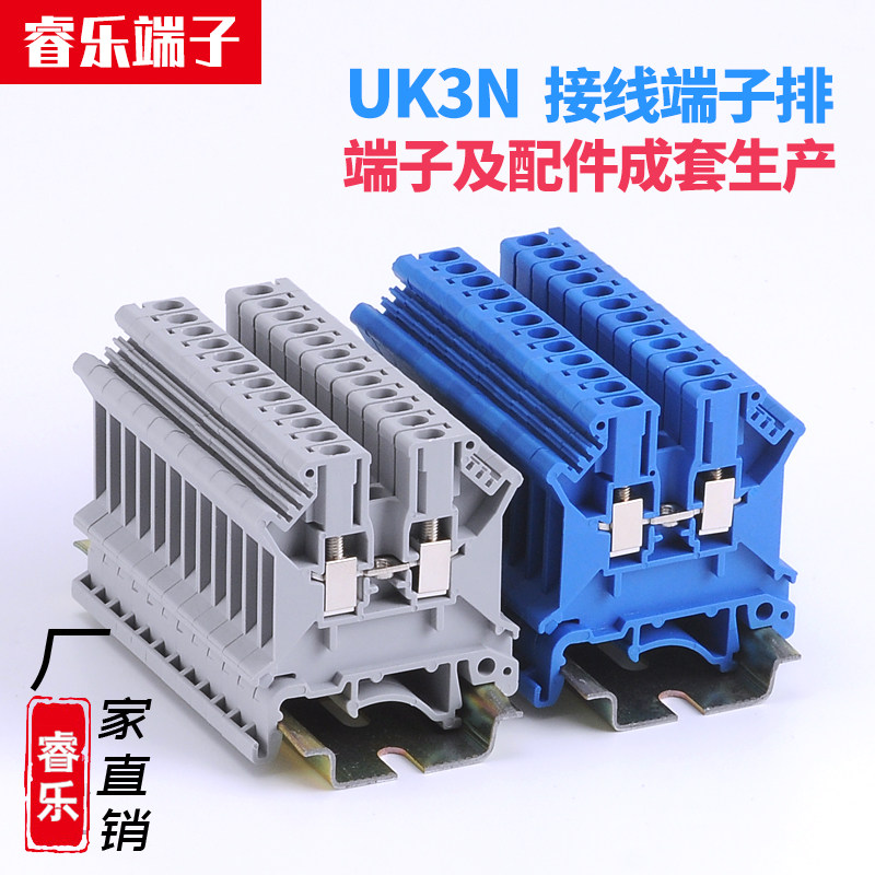 UK3N wiring row screws rail-type pure copper voltage terminals 2 5mm square without sliding wire flame retardant manufacturer direct