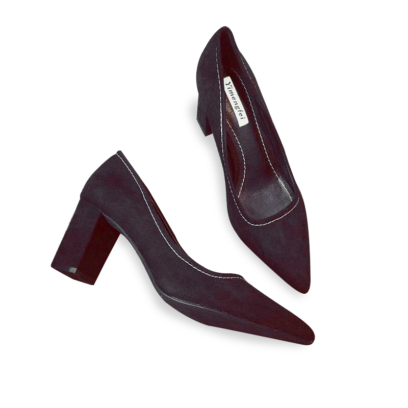 2022 Summer new Korean version 100 hitch Pointed Teenage Girl High Heel Shoes Coarse Heel Single Shoe Career Shallow Black Working Shoes