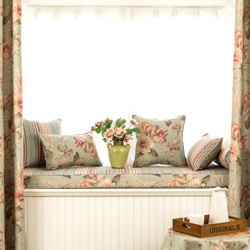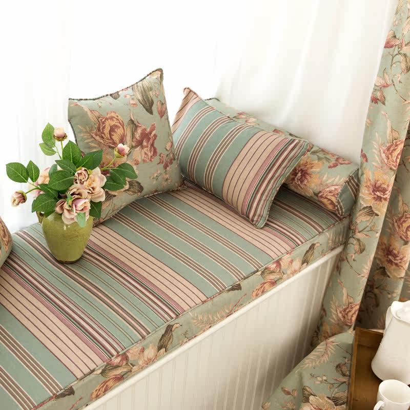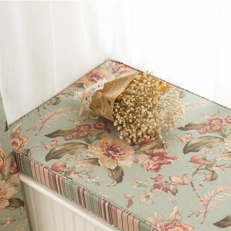 American Countryside Cotton Hemp Large Flower Floating Window Mat High Density Sponge Window Sill Pad Booking Made Cassette Collapse Mi Mat Flowers Room