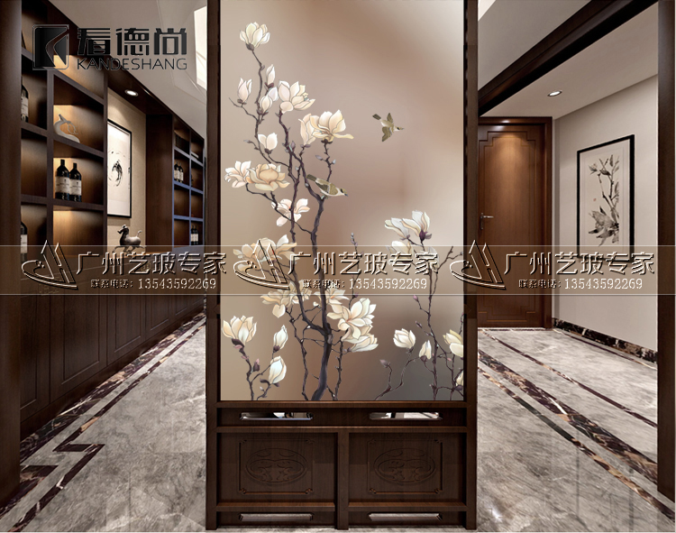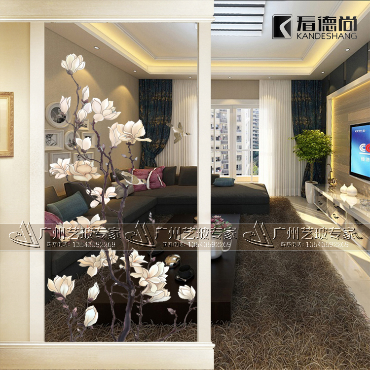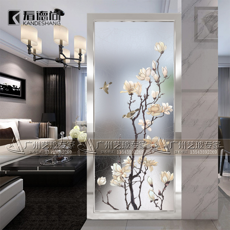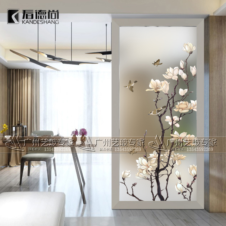 Minimalist Art Glass Partition Living Room Screen Decoration Shoes Cabinet Xuanguan Background Wall Modern Frosted Crafts Jade Orchid