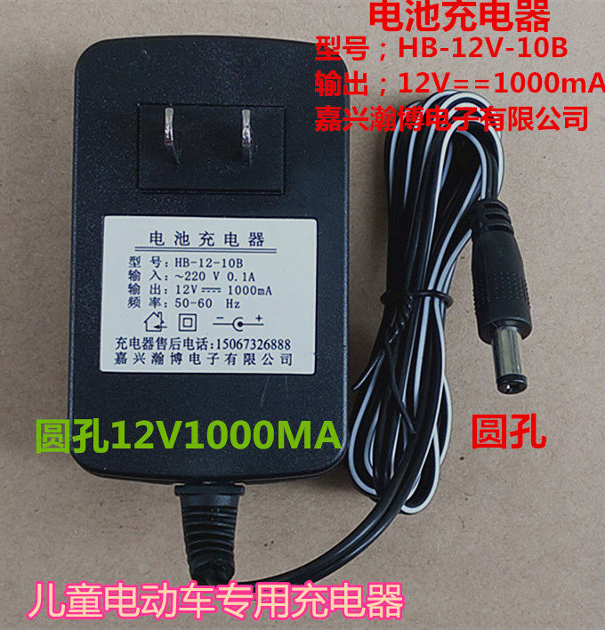 HB-12-10B Battery Charger Jiaxing Hanbo Electronic Round Hole 12V1000MA Children Electric Charger