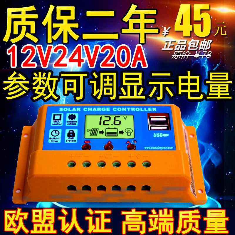 20A solar controller 12V photovoltaic panel controller 24v street lamp light control automatic universal