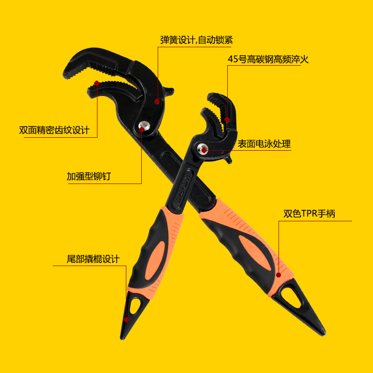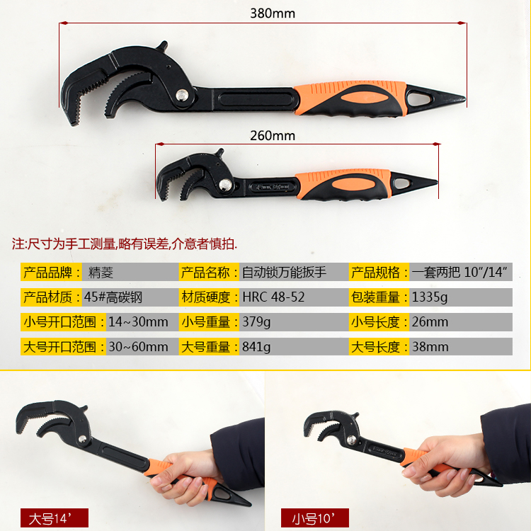 Self-lock universal wrench 10 inch 14-27MM small number self-lock universal wrench 14 inch 30-60MM large number self-lock universal wrench 14-60MM a large small
