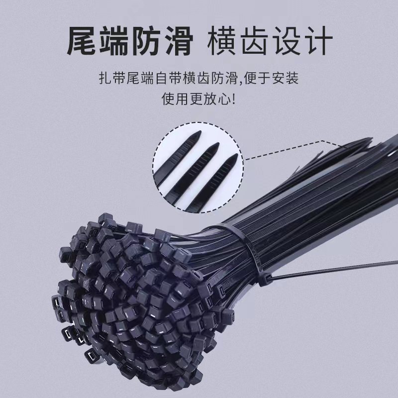 Plastic self-locked nylon tie 4 * 300 black burglar-proof bundling fixed locking buckle Le dead dog harness cord rope *