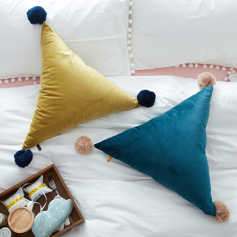 Nordic style solid color handmade wool ball pillow Triangular cushion ins sofa cushion decorative pillow cushion