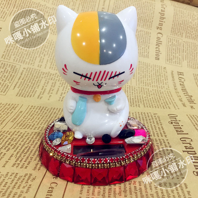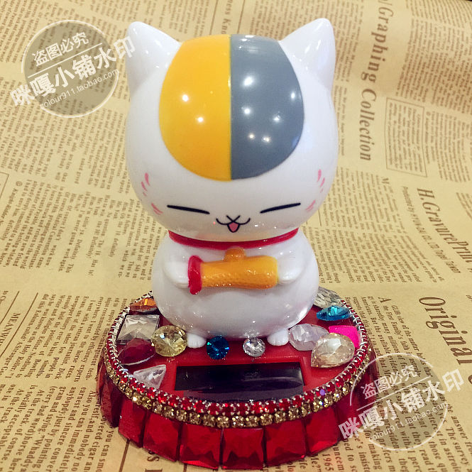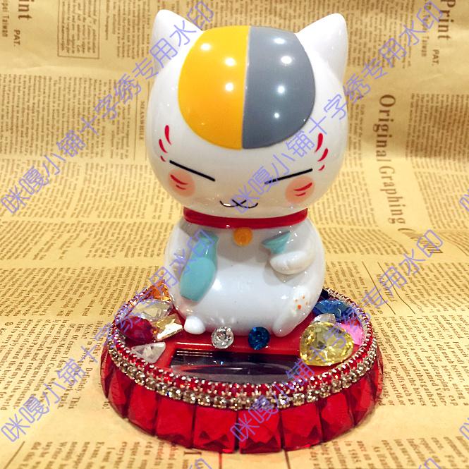 Diamond-encrusted crystal cartoon cat teacher solar bobblehead doll car decoration Natsume