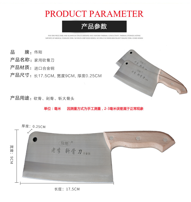 High density alloy steel Hand forged household bone cutter Bone cutter Bone cutter Thickened bone cutter Kitchen knife