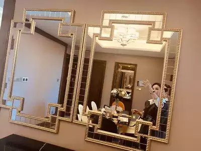 Bathroom powder room mirror European-style entrance square wall-mounted mirror Living room wedding decoration mirror New Chinese background wall