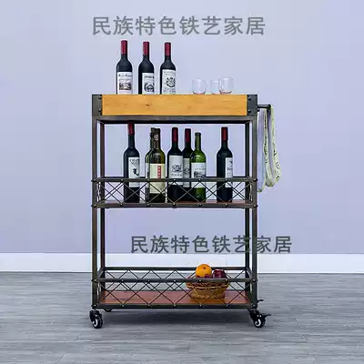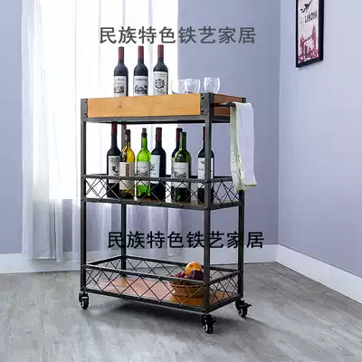 American wrought iron solid wood dining car kitchen shelf Multi-layer seasoning bottle seasoning tank rack Removable wine bottle wine glass rack