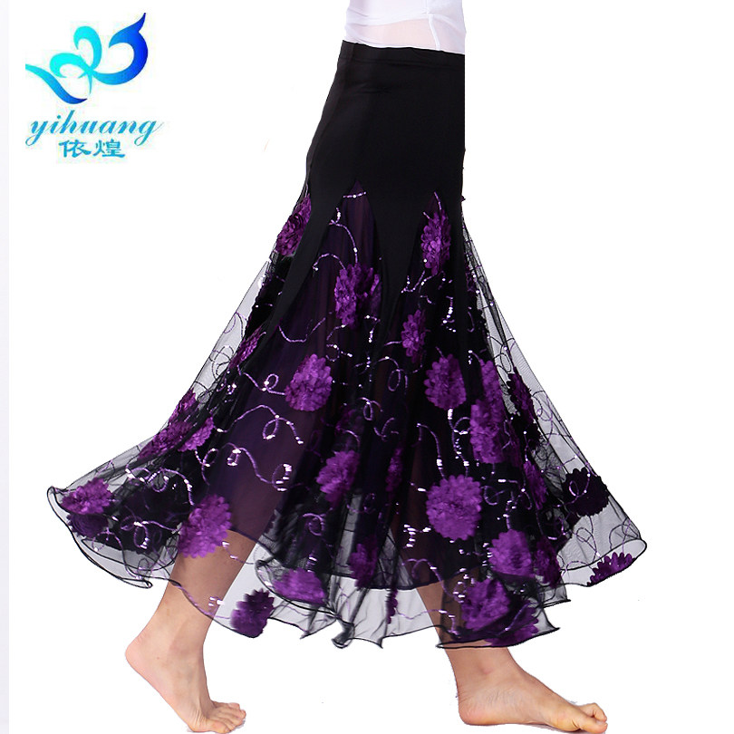 New Morden National Standard Waltz Dance Social Dance Online Dress Solid Flower Square Dance All Season Big Hem Skirt Woman