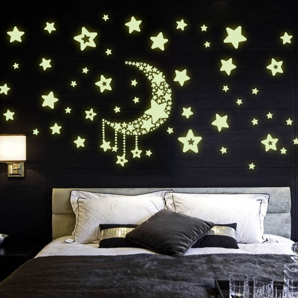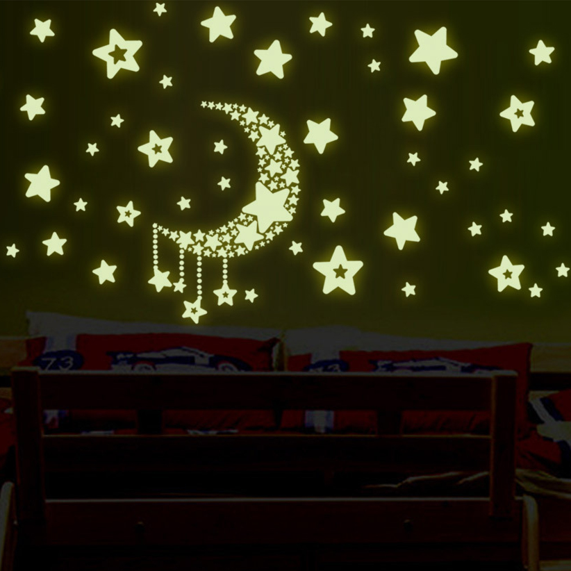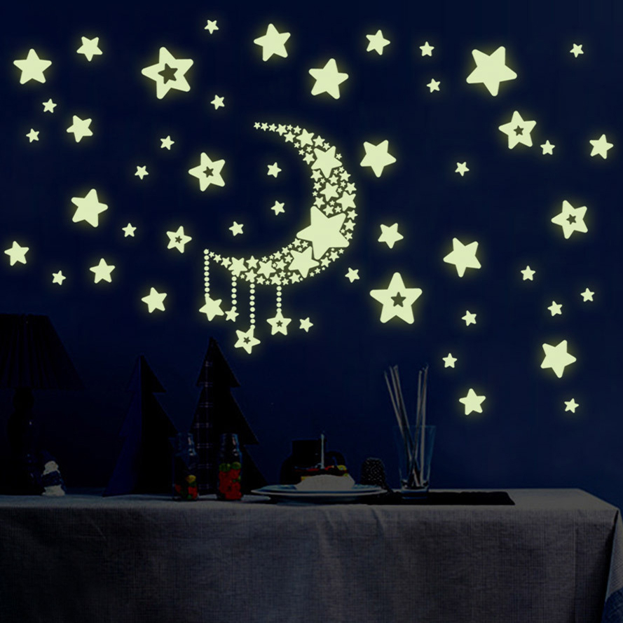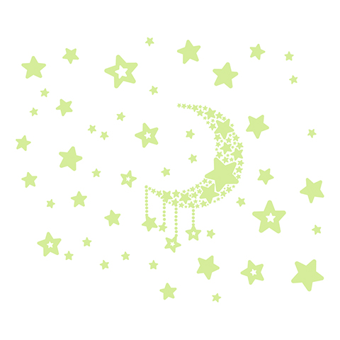 Children's House Night Light Sticker Paper Cartoon Moon Star Luminous Patch Wall Stickler Kindergarten Fluorescent Patch Removable