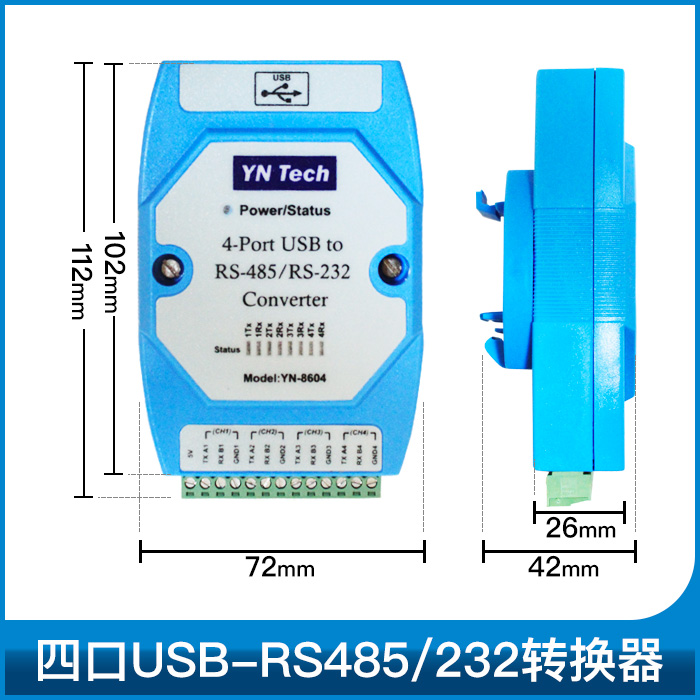 YN8604 USB turn 4 ports RS485 232 four-way RS232 turn USB serial port line COM port conversion industry