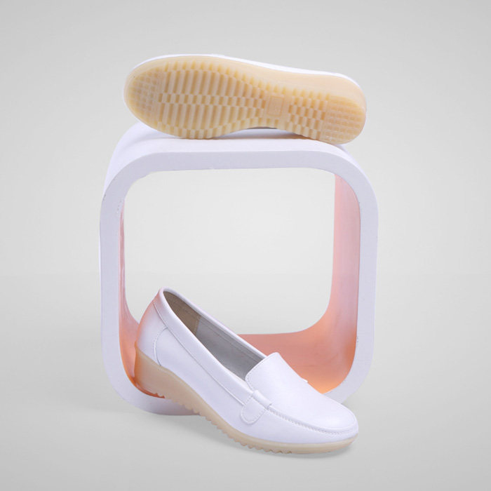 Nurse Shoes White Bull Gluten Bottom Women's All Season Style Casual Leather Shoes Pharmacy Beauty Salon Beauty Shop hospital Working shoes Slope heel