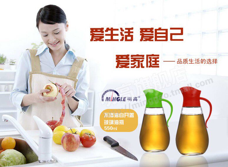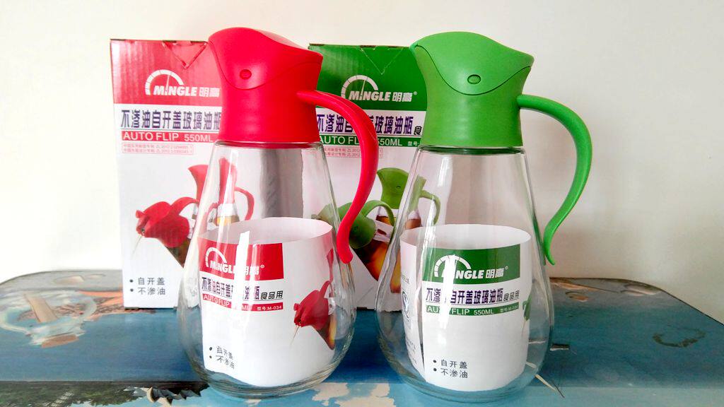 Upgraded version Minggao M034 oil pot glass leak-proof soy sauce bottle kitchen large non-oil leaking automatic lid 550ML