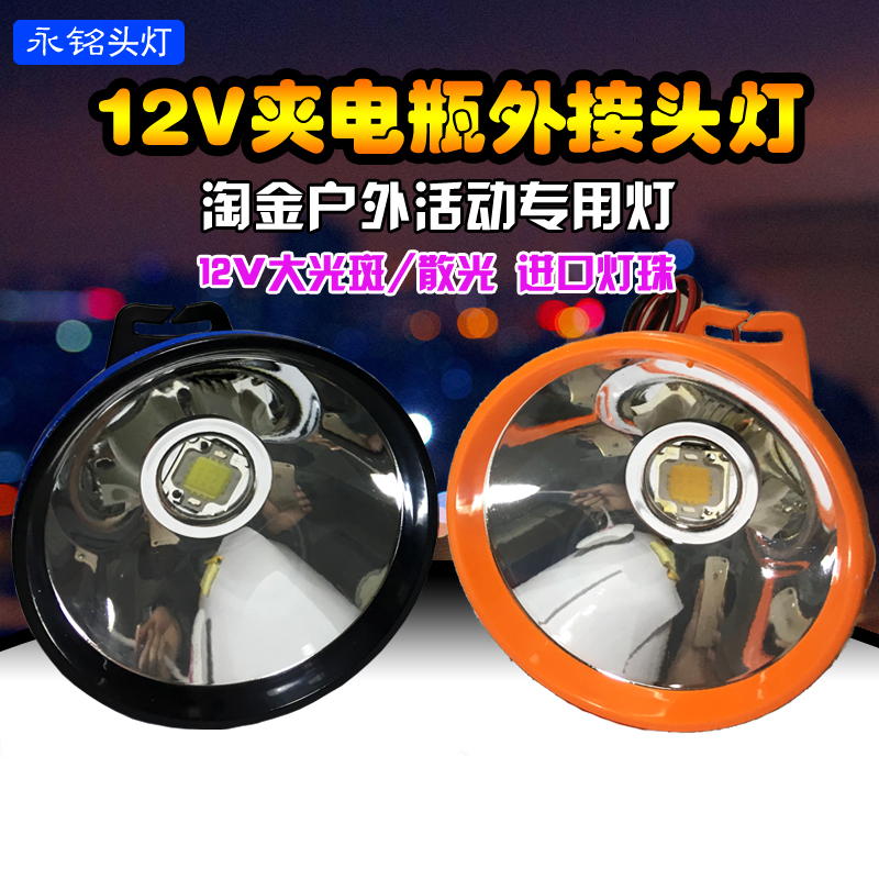 Super bright 12V external connected battery head lamp led strong bright aperture astigmatic lamp holder yellow light white light 200W large light class