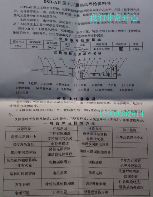 Pine Hills Straight Shank High Power Plastic Welding Guns DSH-AII 2000W Geomembrane Hot Air Welding Gun Hot Wind Gun