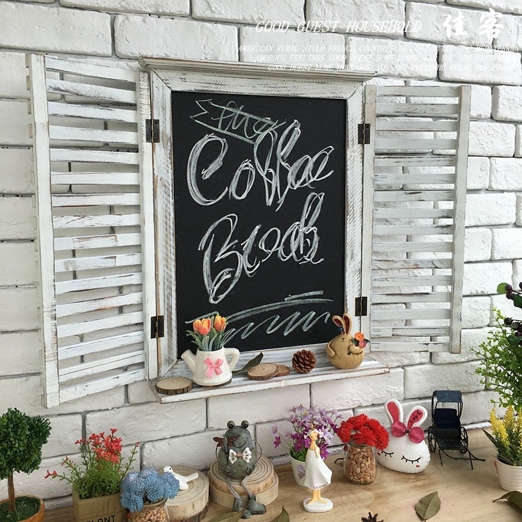 Retro Make Old Solid Wood Cafe Bar Creative Wall-mounted Blackboard Shutters Fake Window Leave Message Board Wall Decoration Background