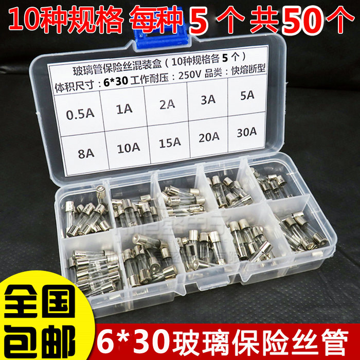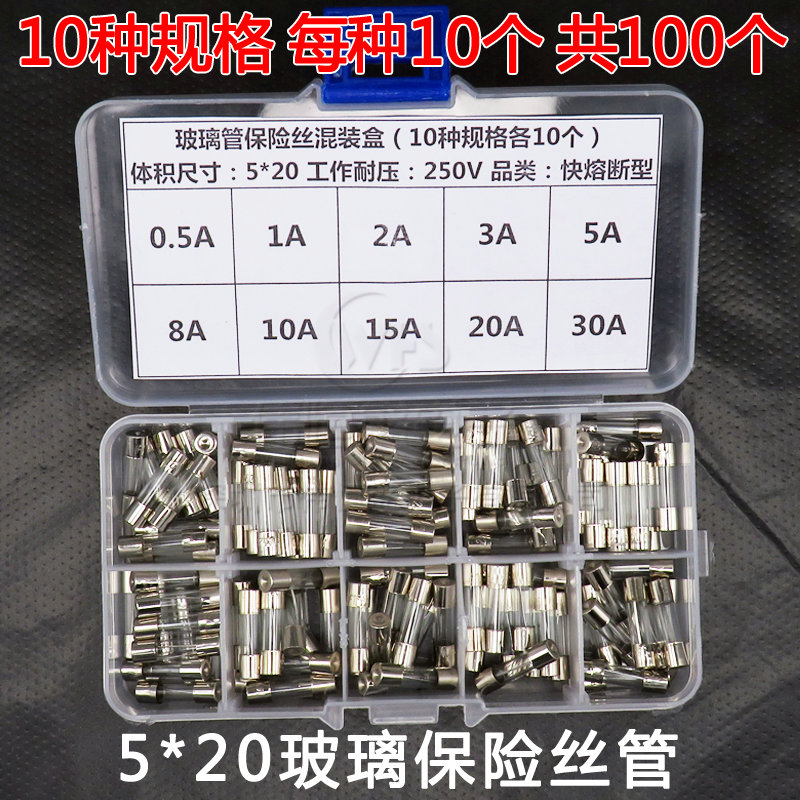 Glass fuse sample box 10 kinds of mixed 0 5 1 5 10A and other fuse element package