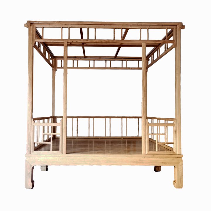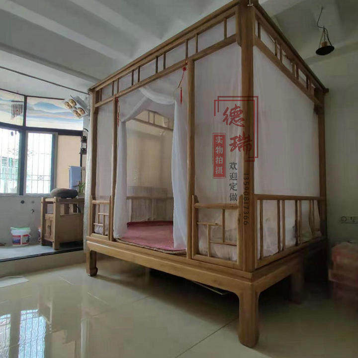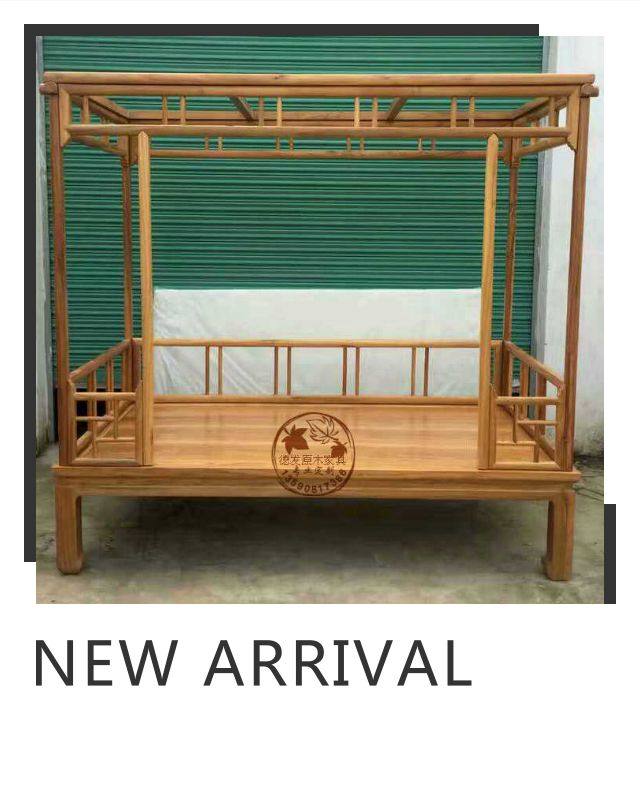Elm Wood Shelf Bed New Chinese Log Pillar Bed Double Man Bed Wedding Bed Plus-size Bed Solid Wood Zen Bed Bedroom Furniture