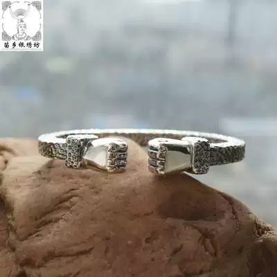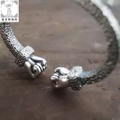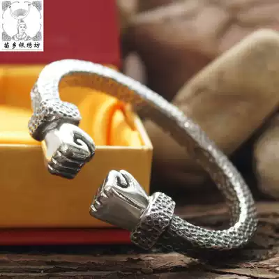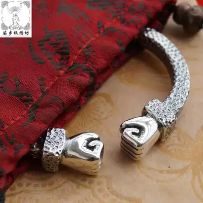 Miao Township Silver Embroidery Square Pure Handmade 999 Domineering Fist Fashion Men's Design Customized Personality Foot Silver Bracelet