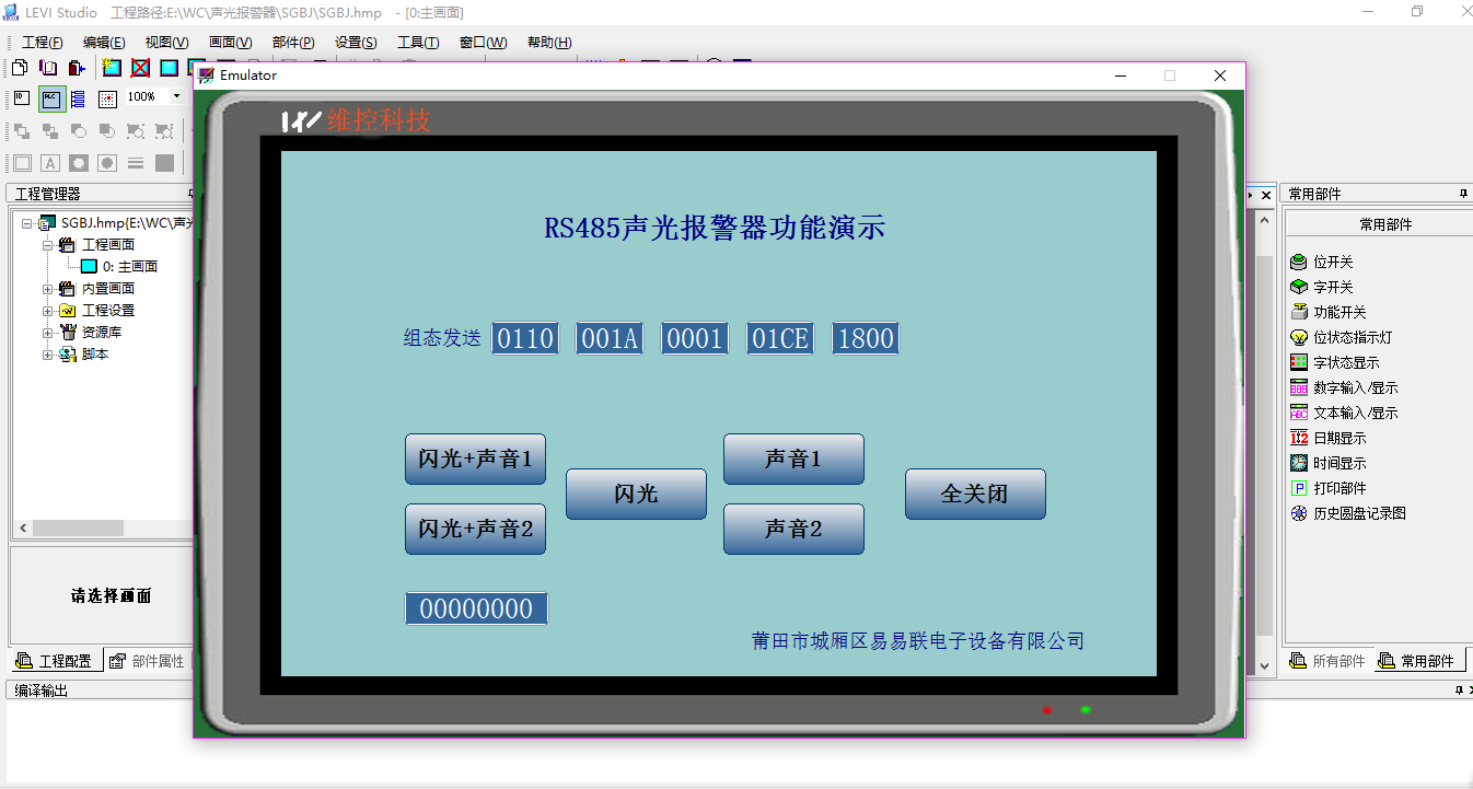 Maintenance control configuration dedicated RS485 sound and light alarm