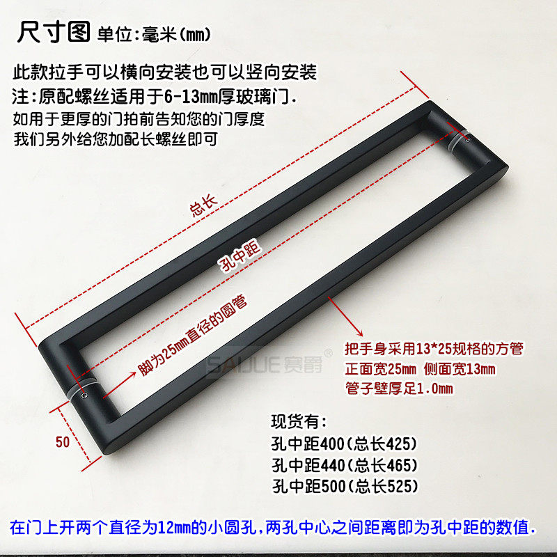 304 stainless steel square glass door handle bathroom handle shower door handle titanium alloy dumb black