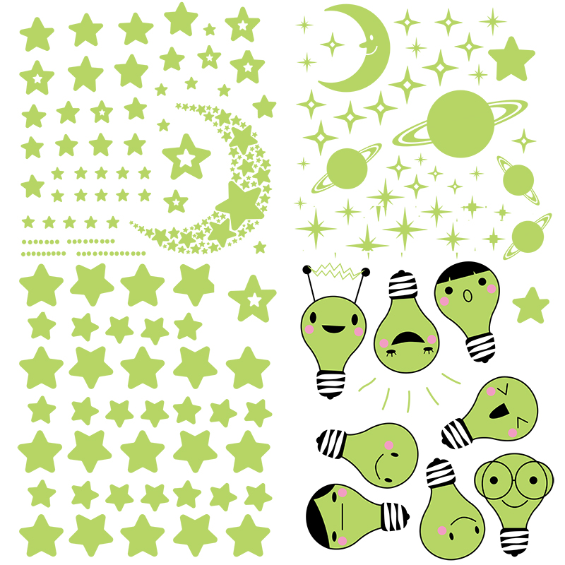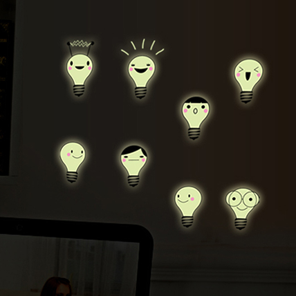 8 small light bulb luminous stickers removable for children's student room decoration luminous fluorescent sticker wall stickers self-adhesive