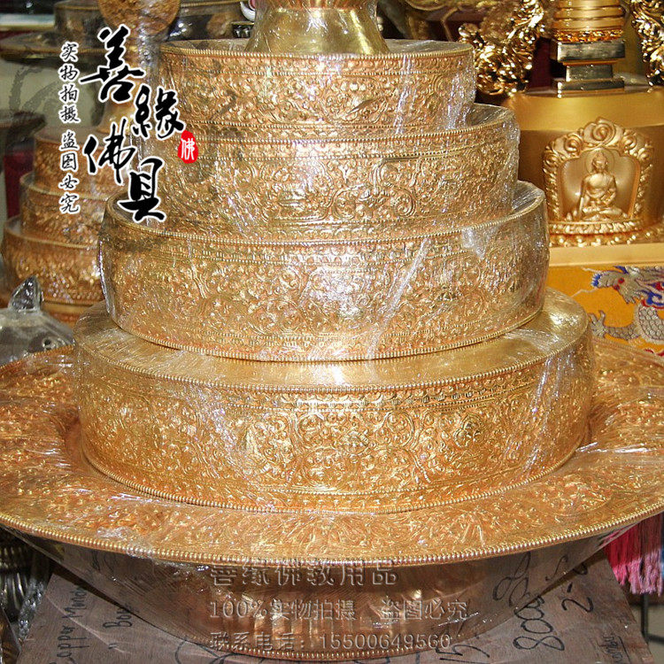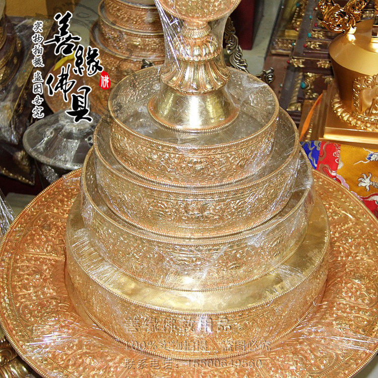 High-end boutique Nepali pure hand large work sculpture flower red copper full-time gold Manzamanda disc for a depository dish 55cm