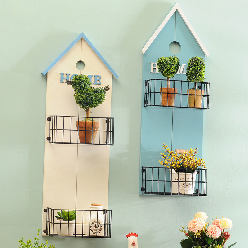 American country fresh pastoral retro cafe shop small house wall decoration storage basket flower rack storage wall decoration