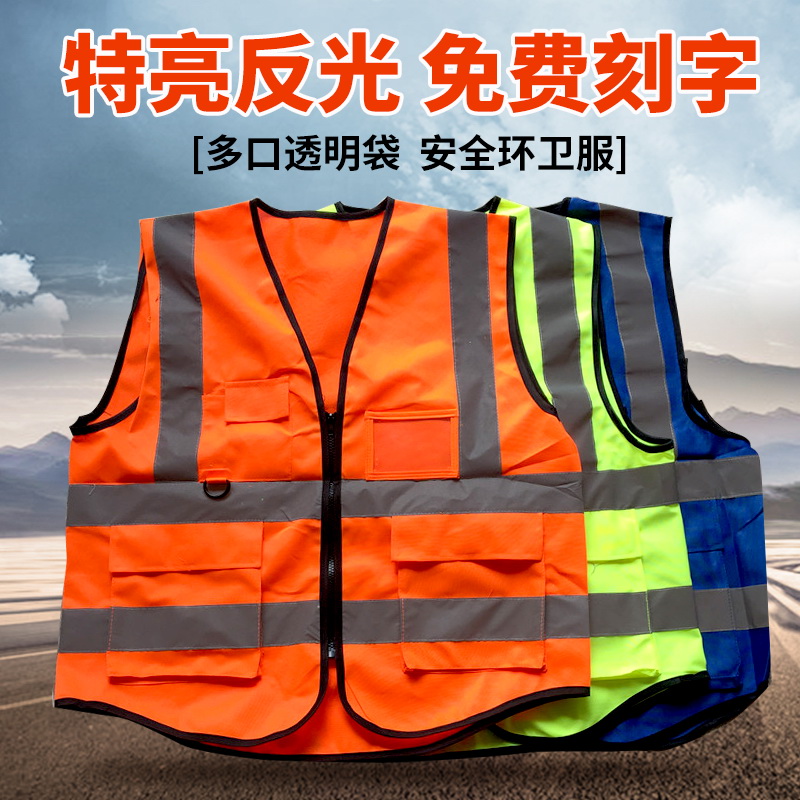 Reflective vest multi-pocket transparent bag safety suit sanitation suit cycling night reflective suit
