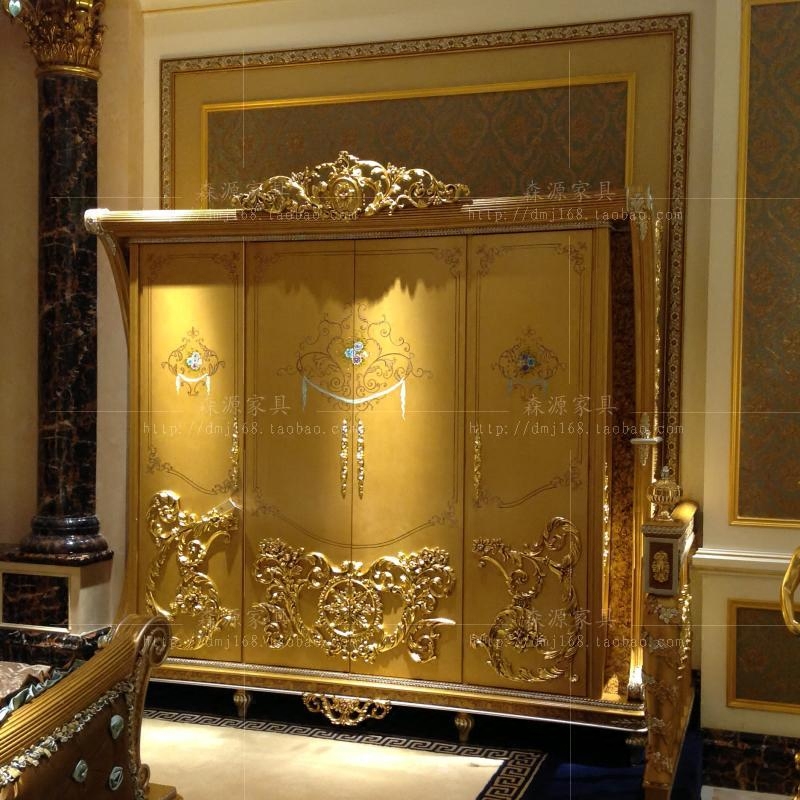 Italian Luxurious Champagne Golden Wardrobe Au Style Solid Wood Carved Four-door Wardrobe Bedroom Containing Cabinet Custom Wardrobe