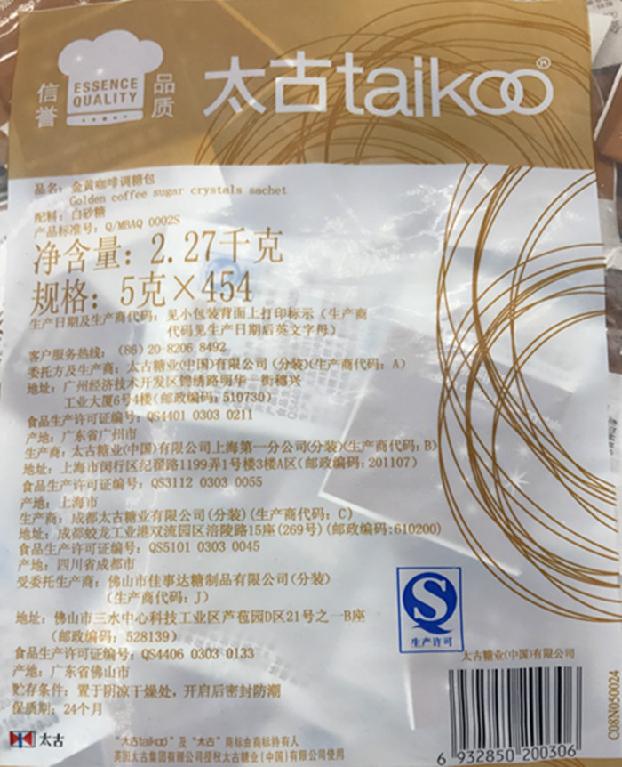 Taikohuang Sugar Taikoo Gold Yellow Coffee Blend Sugar Too Ancient Yellow Sugar Bag 454 * 5g Coffee Sugar Package