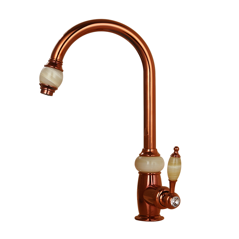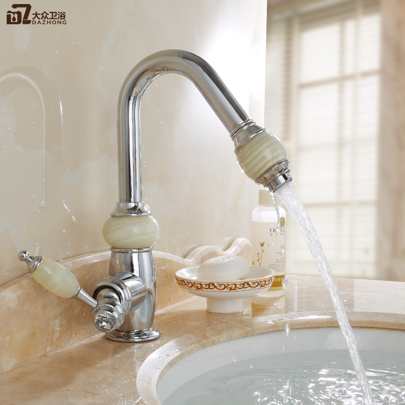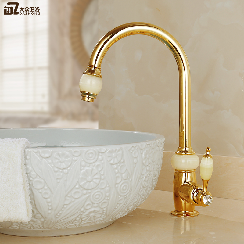 European all copper pull-out hot and cold Golden Basin faucet rose gold table washbasin Jade telescopic Dragon
