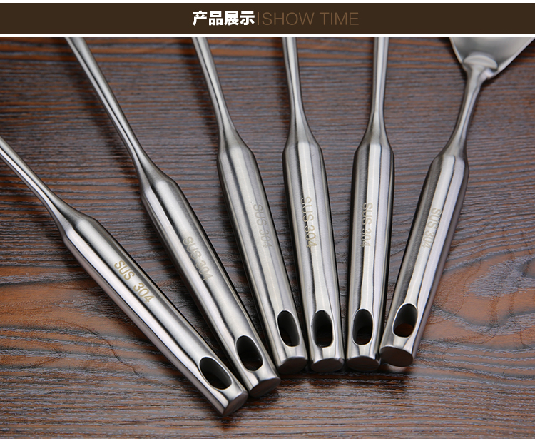 304 food grade stainless steel cookware cover set cooker 6 pieces spoons shovel pan shovel leaking soup ladle shovel sand light high temperature resistant