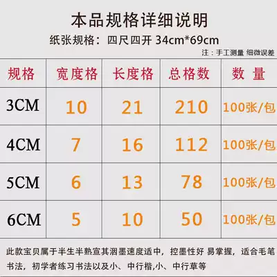 Anhui square grid rice paper Calligraphy Special paper lattice half-cooked four feet four open 3cm4cm5cm6cm small letter calligraphy brush calligraphy calligraphy creative practice paper