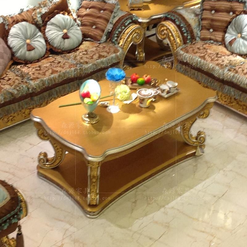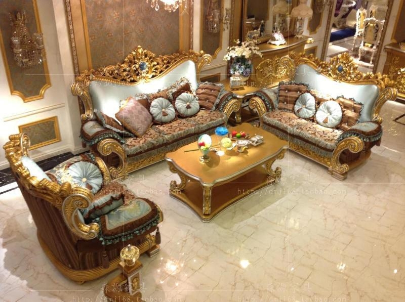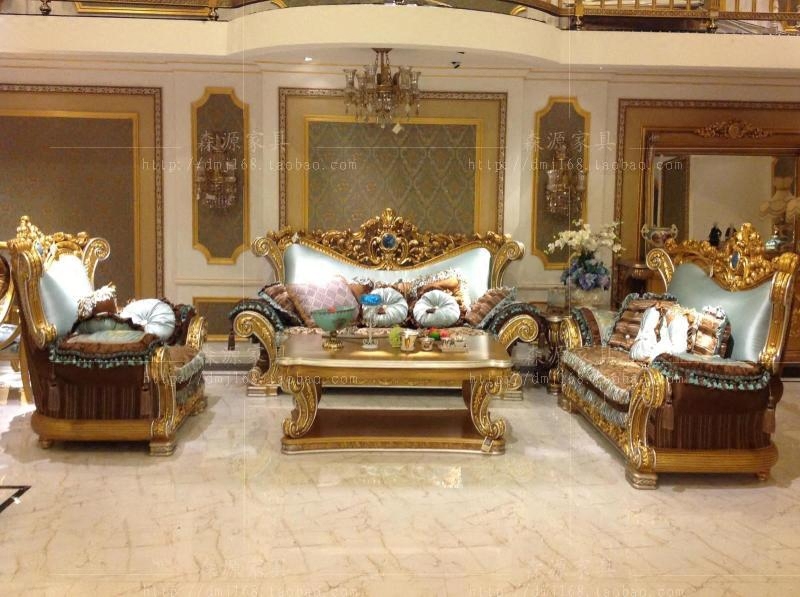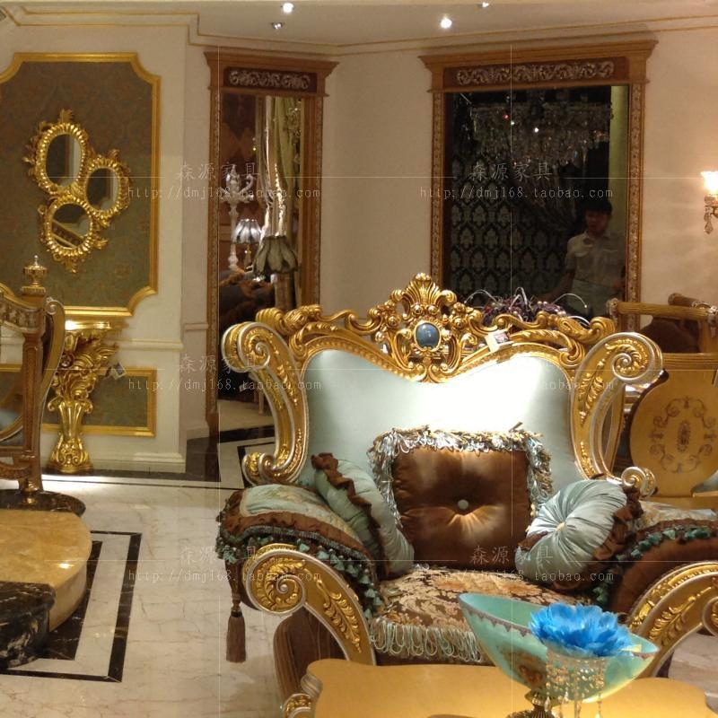 Cloth Art Fashion Sofa style all-solid wood Carved Champagne Golden Couch Villa living room Palace Trio Sofa