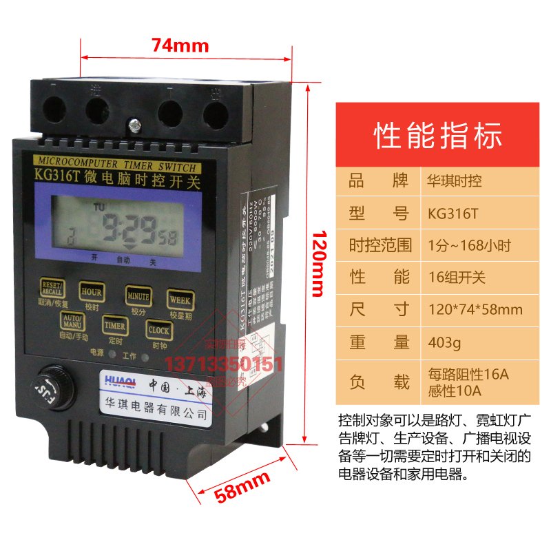 Shanghai Huaqi KG316T Microcomputer Time Control Switch Timer Street Lamp Timing Switch Spot