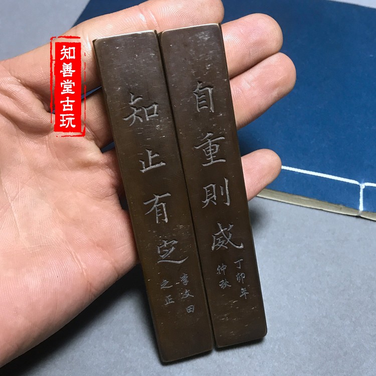 The four treasures of the study, high-quality pure copper, solid brass ruler, pressed paper, copper paperweight, knowing that there is a certain self-weight and prestige