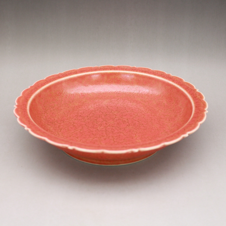 Qing Kangxi chicken blood red glaze plate flower mouth plate color glaze antique antique ceramics imitation ancient goods collection ornaments