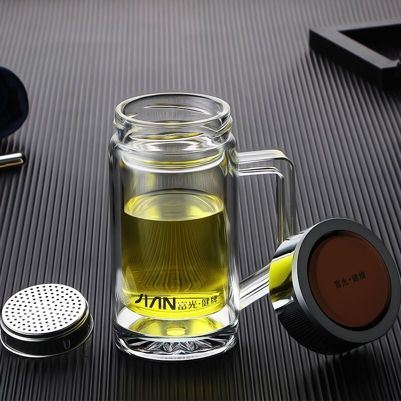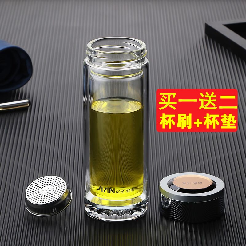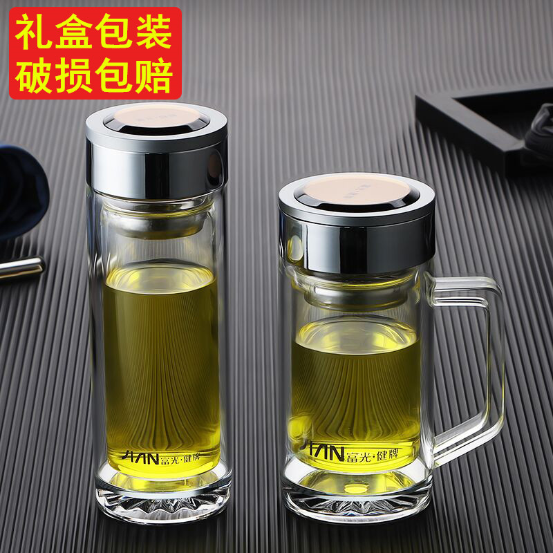 Rich Light Bodybuilding Double Layer Thickened Crystal Glass Cup x108 Large Capacity Business Filter Tea Cup Gift Box Cup Custom