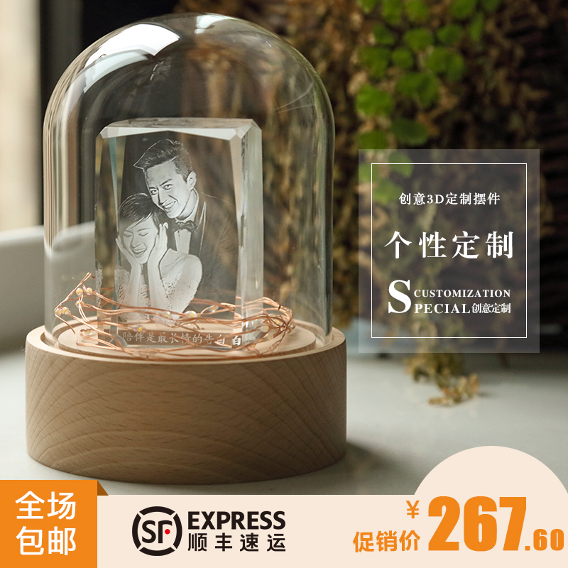 Fire tree silver glass covered night lampstand lamp high-end practical creative crystal photo customization of new wedding gift