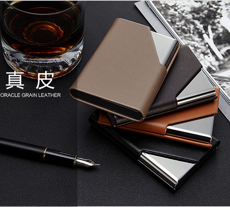 Pure Bull Leather Creative Name Film Box Business Men's Style Genuine Leather Clips Free Lettering Casual