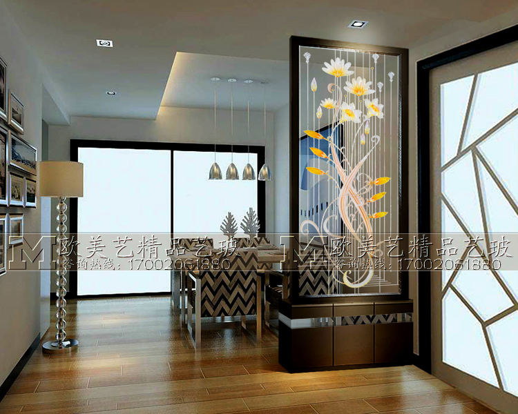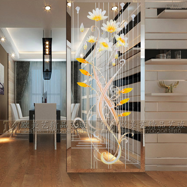 Art Glass TV Background Wall Jade Orchid Partition Screen Xuanguan Color Painting Sculpture Flower Steelmaking House With Ice Clear Jade Finish